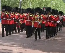 Welsh Guards Band spiller mens vagter marcherer op ad the Mall til vagtskifte
