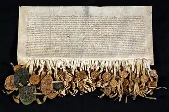 Margrete blev hyldet med den nyopfundne titel »Fuldmægtig frue og husbond og hele Danmarks formynder«. Titlen indebar, at Margrete skulle være landets regent. Det var ikke ualmindeligt, at enkedronninger havde regeret som formyndere for en mindreårig kongesøn, ligesom Margrete gjorde med Oluf, men det var nyt og ukendt, at dronningen regerede i egen ret. I dokumentet fra Lund ses det da også, at ordningen tænktes at være rent midlertidig, indtil rigsrådet – med dronningens samtykke – havde valgt en ny tronarving. Margrete skulle i øvrigt regere i overensstemmelse med Olufs håndfæstning, som sikrede den danske adels afgørende indflydelse. Sådan var indholdet i dokumentet fra Lund med tilsvarende ord lod Margrete sig hylde 11 dage senere på Sjællands Landsting i Ringsted. Men det skulle vise sig, at Margrete var i stand til ændre virkeligheden.[45]