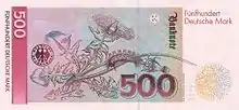 Mod slutningen af det 20. århundrede blev Maria Sibylla Merians arbejder atter offentligt værdsat og påskønnet. Hendes portræt var oprindelig planlagt at skulle præge den nye 100-DM-pengeseddel i 1990. Imidlertid var kun en kunstnerisk utilfredsstillende radering af Johann Rudolf Schellenberg til rådighed, fordi der fremkom tvivl om autenticiteten af det oprindelige forlæg. Bundesbank foranstaltede derfor en konkurrence om at skabe et nyt trykforlæg i høj kvalitet ud fra denne radering, som senere kunne danne grundlag for portrættet på pengesedlen. Da 100-DM-sedlen skulle udkomme som en af de første, betød disse vanskeligheder, at personerne blev ombyttet, så Merians portræt i stedet kom til at pryde 500-DM-sedlen.[10] Sedlens bagside viste Merians afbildning af mælkebøtte med larve og imago af hede-penselspinder. Afbildningerne bibeholdtes, indtil Tyskland overgik til Euro-møntfoden.