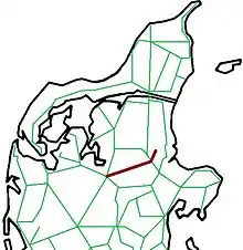 - Fårup station (Fp) i km 19,7 - forbindelse med Den østjyske længdebane.