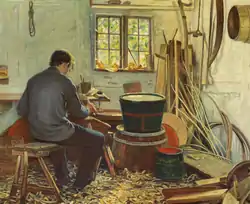 ![]() En bødker i sit værksted af Marie Vilhelmine Bang, 1895 | |