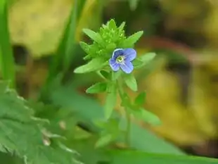 Blomstringen sker i april-august, hvor man finder blomsterne siddende i endestillede, løse klaser. De enkelte blomster er 4-tallige, mørkeblå og svagt uregelmæssige. Frugterne er kapsler med flade frø, som spirer særdeles villigt.