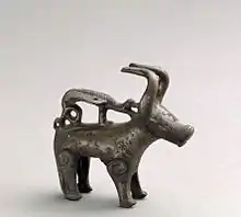 Okseformet vægtlod af bronze (datering: 1370-80). Loddet følger vægtsystemet med mark, halvmark, kvartmark (to øre) og ottendedelsmark (en øre).