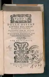 Delle divine lettere del gran Marsilio Ficino, 1563