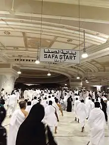 Marwa og Safa er navnene på de to høje hvor Hagar fortvivlet søgte efter vand da Abraham havde forladt hende og hendes spæde søn Ismael i ørkenen. Pilgrimmene løber symbolsk frem og tilbage syv gange mellem disse høje.