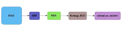 De forskellige processer, der aktiveres til opstart af Windows Vista. Master Boot Record er den anden process i forløbet.