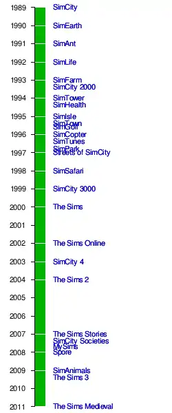 I februar 2000 bliver The Sims udgivet. Spillet bliver en stor succes og solgte over 11,3 millioner eksemplarer. Allerede i august kom den første udvidelsespakke The Sims: Livin' It Up . Året efter udkom SimCoaster (også kendt som Theme Park) og SimGolf. der udkom yderligere to udvidelsespakker til The Sims nemlig The Sims: House Party i marts og The Sims: Hot Date i november.