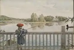 Medefiskeri er ret simpelt. Lisbeth metar, et maleri af Carl Larsson 1898