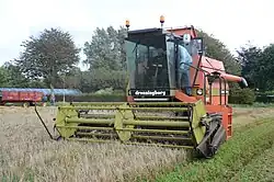 - Billeder af mejetærskere med skærebord til majs og hvede Arkiveret 30. oktober 2005 hos Wayback Machine