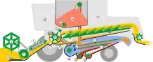 - Flot billede af en John Deere hvor skærebordet er afmonteret så man tydeligt kan se det modificerede understel og krængningsmuligheden. Arkiveret 26. oktober 2005 hos Wayback Machine