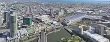 Højdegrænserne for byggeri i Melbourne centrum blev fjernet i 1958, efter byggeriet af ICI House, som var byens første skyskraber. Flere forstæder kom til, serviceret af store indendørs indkøbscentre som Chadstone Shopping Centre.[47] Efterkrigstiden så også en betydelig fornyelse og modernisering af centrum og St Kilda Road.[48] Nye brandregulativer og manglende plads til nybygninger resulterede i, at de fleste høje bygninger fra før krigen blev revet ned eller i andre tilfælde blev facaden bevaret og nyt bygget bagved. I forstæderne blev mange af de store palæer revet ned eller opdelt.
