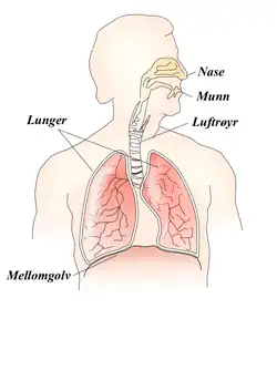 Ved sammentrækning presses den kuppelformede muskel ned mod abdomen, hvorved volumen i thorax øges, lungerne udvides og man indånder luft. I liggende stilling presses organerne i abdomen op mod mellemgulvet, hvorved sammentrækningen og derved åndedrættet besværes, hvilket forklarer hvorfor man synger bedst i stående stilling.