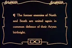 Mellemtekst fra stumfilmen Birth of a Nation (1915) af D.W. Griffith.