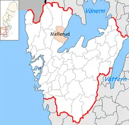 Mellerud kommune ligger i det svenske län Västra Götaland, i landskapet Dalsland ved den sydvestlig ende af den store sø Vänern. Kommunens administrationscenter ligger i byen Mellerud.