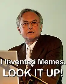 - ("En enhed af kulturel arvelighed, en hypotetisk analog til det isolerede gen, der tænkes underlagt naturlig selektion i kraft af dens 'fænotypiske' konsekvenser for dens egen overlevelse og replikation i det kulturelle miljø.")