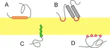 Mange proteiner der reagerer på den ydre eller indre side af membranen regnes som temporale eller perifere membranproteiner.