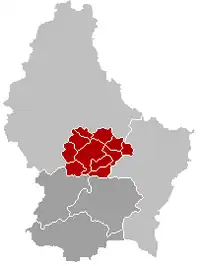 Kort over Luxembourg hvor kantonen Mersch er markeret