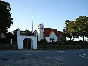 Kirken fremstår hvidkalket på syd- og vestsiderne, mens nord- og østsiderne står i de rå sten. På våbenhusets gavl ses et solur fra 1756.