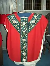Rød bruges 2. juledag og 1. og 2. pinsedag. Den bruges også på aposteldagen som er 6. søndag efter pinse og i Norge Olsok (Olav den helliges dødsdag 29. juli). Farven symboliserer blodet og ilden.