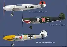 - Bf 109 B (Bruno) — Brugt af Luftwaffe i den Spanske Borgerkrig.
