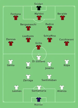 Real Madrid vandt kampen 3-2 efter forlænget spilletid, da den ordinære var endt 2-2. Francisco Gento scorede det afgørende mål.