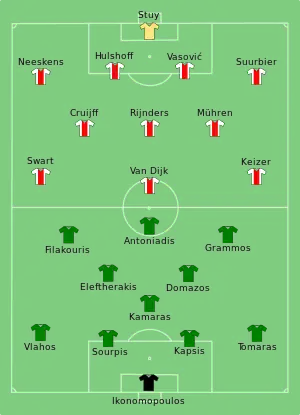 Angriberen Dick van Dijk bragte allerede i det 5. minut Ajax foran. Indskiftede Arie Haan bragte i det 87. minut hollænderne foran med 2-0, som også blev kampens resultat. Dette startede en række med tre sejre i træk i turneringen for Ajax.[2]