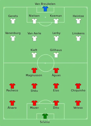 Hollænderne havde de tre danske spillere Søren Lerby, Ivan Nielsen og Jan Heintze med i hele kampen.