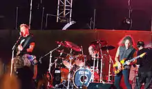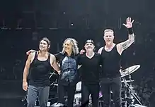 ![]() Metallica i The O2 Arena i London, England i 2017. Fra venstre mod højre: Kirk Hammett, Lars Ulrich, James Hetfield og Robert Trujillo. | |