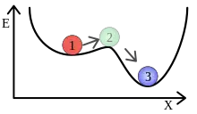 En tilstand er metastabil (1) hvis den er mindre stabil end systemets mest stabile tilstand (3).