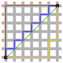som kaldes den euklidiske metrik (eller den form, den tager i to dimensioner). Dette er imidlertid ikke den eneste mulige metrik. F.eks. er