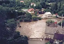 | Metujefloden i Nové Město nad Metují under oversvømmelserne i 1997 | |