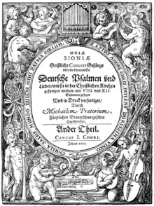Samlingen Musae Sioniae kom i perioden 1605–1610 og en samling liturgisk brugsmusik blev offentliggjort i 1611 (blandt andet messer, hymner, magnificatsatser). Til forskel fra de forbløffende "moderne" tidlige stykker var værkerne fra den midterste skabelsesperiode solidt plantet i den tyske tradition med protestantiske koralbearbejdelser.