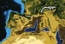 Middelhavet var med stor sikkerhed tørlagt og oversvømmet i den miocæne tidsperiode. For omkring 5,9 millioner år siden i den geologiske tid Miocæn var Middelhavets vandoverflade cirka to kilometer under verdenshavets. For cirka 5,4 millioner år siden brød havvandet igennem Gibraltarstrædet og oversvømmede Middelhavet.[4][5]
