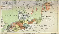 ![]() Nordeuropa i 1400, viser udbredelsen af Hansestæderne.  | ||