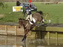 Rytteren bærer ridehjelm og ridevest (en vest, der beskytter overkroppen mod hårde stød). Hesten har normalt udstyr på til hhv. spring og dressur. Hesten bærer gamacher og klokker, der beskytter hestens ben og hove. Hesteskoene kan få skruet brodder mordax i, så den bedre kan stå fast i terrænet.
