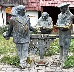 ![]() Statuer af tre af filmens medvirkende i scene fra filmen, opstillet i Dilijan i Armenien | |