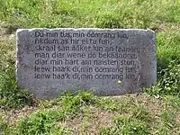 Dü min tüs, min öömrang lun, huar so huuch a düner stun, huar bi a Kniip a braanang bromet, huar a waastwinj ei ferstomet, iiwag spelet mä a sun, leef haa’k di, min öömrang lun! |