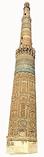 ![]() Minareten i Jam og Qasr Zarafshan, august 2005. | |