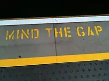 Mind the Gap står på mange skilte i togdrift i England og sætningen høres ofte i højtalere, hvor passagererne opfordres til at være opmærksomme på mellemrummet mellem perronen og togets indstigning