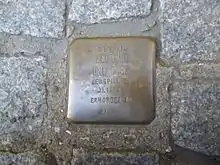 Mindesmærke (en såkaldt snublesten) nedlagt i fortov i Flensborg til minde om Gertrud Unikower