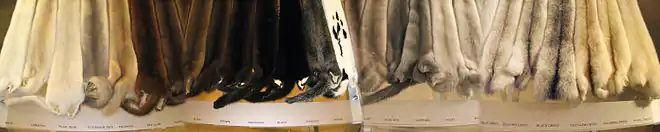Amerikansk mink har i naturen brunlig pels, men gennem avlsarbejde er det lykkedes at frembringe racer med hvidlig, gullig, sort og blålig pels, foruden de såkaldte cross-racer, som har en mørk stribe i pelsen. Jaguar-racen er hvid med sorte pletter. I alt findes der knap 200 forskellige farvevarianter.[29] Det er både minkens race og køn, foruden skindets kvalitet og størrelse som er afgørende for prisen.[30]