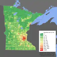- "Minnesota - Selected Social Characteristics". U.S. Census Bureau. 2004. Arkiveret fra originalen 11. februar 2020. Hentet 2007-04-11.