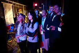 USA's førstedame Michelle Obama ser en performance backstage med iCarly skuespillerne.