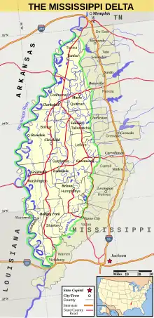 Mississippi-deltaet er den nordvestlige del af den amerikanske stat Mississippi, der ligger mellem Mississippi- og Yazoo-floderne. Området har en særlig racemæssig, kulturel og økonomisk historie, der har givet det tilnavnet "The most southern place on Earth" ("Det mest sydstatsprægede sted på Jorden"). Området er over 3.000 km i nord-sydlig retning og over 1.000 km i øst-vestlig retning, hvor det er længst, og har et areal på knap 18.000 km² bestående af flodengjord. Oprindeligt var området dækket af skov, men blev forvandlet til et af de mest ydende bomuldsområder i USA før den amerikanske borgerkrig (1861-1865). Området tiltrak mange spekulanter, der præparerede mere og mere jord langs flodbredden til bomuldsproduktion. De blev velhavende plantageejere, der baserede deres produktion på afrikanske slavearbejdere, som udgjorde den klart største befolkningsgruppe i dette område før borgerkrigen; der var i mange tilfælde dobbelt så mange mennesker af afrikansk som af europæisk afstamning.
