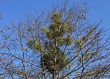 - Ædelgranmistelten (Viscum album ssp. abietis) – på ædelgranarter
