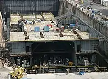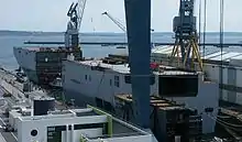 Tonnerre, her ses dokporten og helikopterelevatoren.