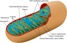 Som nævnt har mitokondrier deres eget arvemateriale (DNA), og de har også det nødvendige maskineri til syntese af RNA og proteiner (læs også: proteinsyntese). Der er blevet fundet 16.569 basepar i humant mtDNA. Disse koder for 37 gener: 22 for tRNA, 2 for rRNA og 13 for peptider.[13] De 13 mitokondrielle peptider er indbygget i indermembranen. Andre proteiner, hvis opbygning er indkodet i cellekernens DNA, er også indbygget i indermembranen.