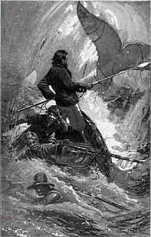 Kaskelothvalen Moby Dick sænker sin forfølgers skib. Illustration fra 1902.