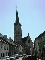 Det andet vigtige område er Kostelní-pladsen med sognekirken Sankt Thomas af Canterbury . Den oprindelige kirke på dette sted blev første gang nævnt i 1247. Denne kirke blev udvidet i det 14. århundrede og genopbygget i det 15. århundrede, efter at den var brændt ned. Gotisk, renæssance og barok stil flettes sammen i sin konstruktion. De sidste ændringer var i nygotisk stil. Det har en rig barok indretning. Kirketårnet er byens vartegn.[7]