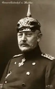 Helmuth Johannes Ludwig von Moltke (tysk udtale: Parentesˈhɛlmuːt fɔn ˈmɔltkəParentes fra den 25. maj 1848 til den 18. juni 1916, oftest omtalt som Helmuth von Moltke eller Moltke den Yngre) var en tysk general og stabschef for den tyske generalstab i årene 1906 til 1914[1]. Moltke blev født Storfyrstedømmet Mecklenburg-Schwerin og meldte sig til den tyske hær i 1869 for det nyoprettede Nordtyske Forbund. Efter en kort periode i Berlin blev Moltke sendt til Frankrig i 1870 for at kæmpe i den fransk-preussiske krig[2]. Moltke udmærkede sig i krigen, og han blev forfremmet til løjtnant. Herefter blev han hjemsendt til Berlin, hvor han arbejdede først for sin onkel, stabschef Helmuth Karl Bernhard von Moltke og dernæst som aide-de-camp for kejser Wilhelm 2. af Tyskland[3]. Moltke blev nu en del af Berlins inderkreds og blev kort efter udnævnt som kvartermestergeneral i den tyske generalstab under Alfred von Schlieffen. Denne position gjorde ham til den de facto næstmagtfuldeste mand i Det Tyske Kejserriges hær. Da Alfred von Schlieffen gik på pension i 1906, var Moltke derfor et naturligt valg til at overtage posten som stabschef[4].